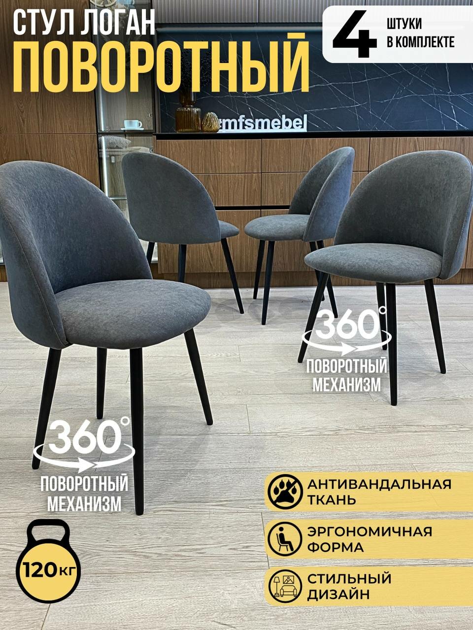 Комплект стульев для кухни Логан с поворотным механизмом 360градусов, 4 штуки графитовые: сравнение цен, характеристики, фото, актуальное наличие и цены.