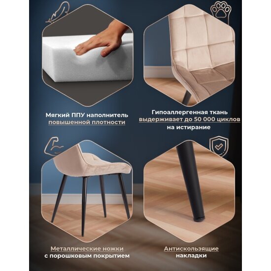 Комплект стульев Tetchair Стул ABRUZZO ( mod. 8060 ) металл/вельвет, 52 х 63 х 85 см, бежевый (HLR 8)/черный 4 в 1 уп.: сравнение цен, характеристики, фото, актуальное наличие и цены.