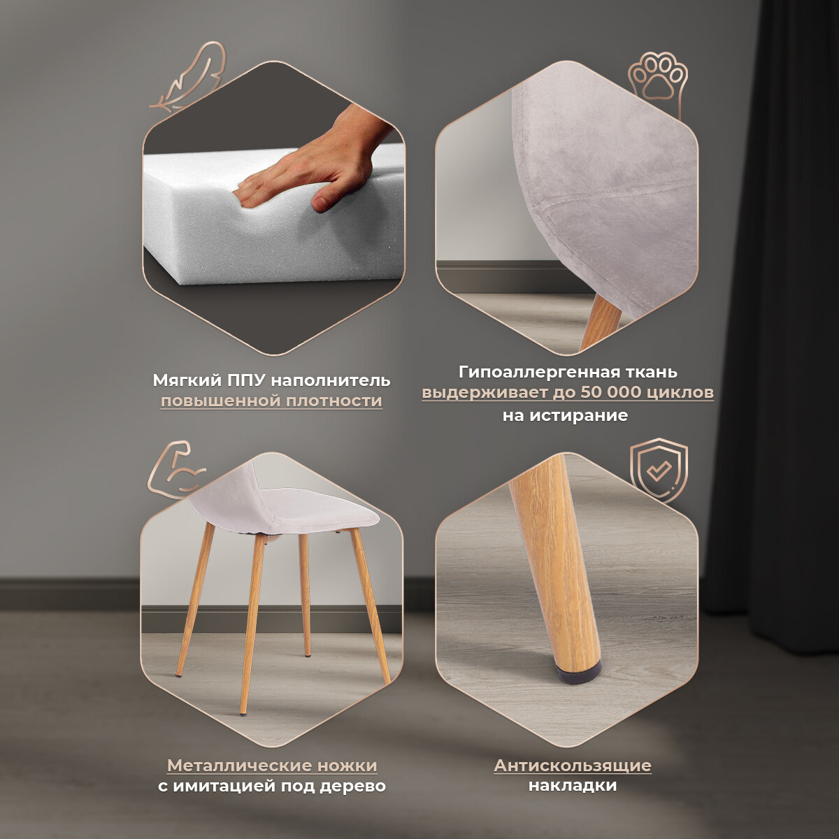 Легкий и элегантный дизайн комплект стульев BREEZE украсит собой любую домашнюю обстановку. Этот удобный и легкий стул будет отличным украшением городской квартиры, загородного дома, кафе или ресторана. Вельветовая обивка благородного цвета будет органично смотреться в любом помещении. Удобные формы сиденья и спинки обеспечат комфорт на протяжении длительного времени. Ножки стула выполнены из металла. Это прочный и долговечный материал, не требующий специального ухода, способный выдерживать большую нагрузку. Тканевая обивка не мнётся, не меняет форму, пропускает воздух, экологична и гипоаллергенна. Стул будет радовать вас своим первоначальным видом долгие годы. Стул подойдёт для гостиной, для кухни, для спальни, для ресторана или для кафе. Стул очень прост в сборке, инструкция по сборке прилагается.