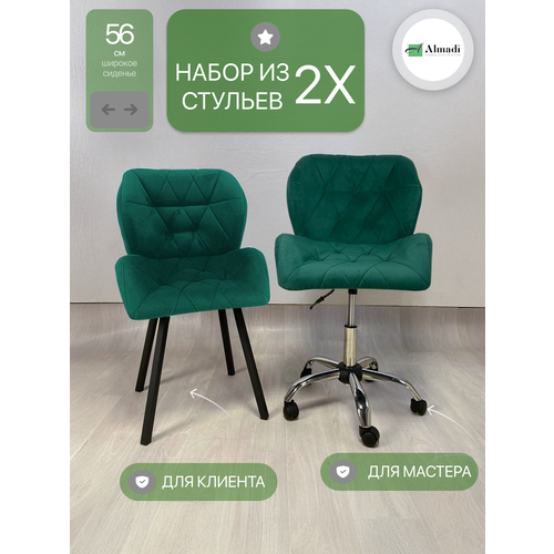 Комплект стульев Ракушка Люкс для мастера и клиента (темно-зеленый, велюр): сравнение цен, характеристики, фото, актуальное наличие и цены.