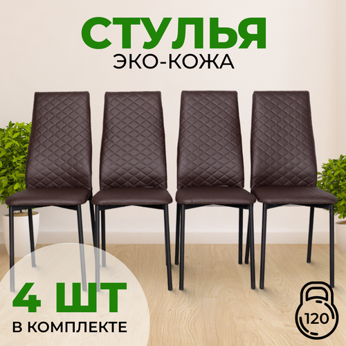 Стулья для кухни SANYAK комплект 4 шт мягкие со спинкой для обеденной зоны, экокожа, Коричневый: сравнение цен, характеристики, фото, актуальное наличие и цены.