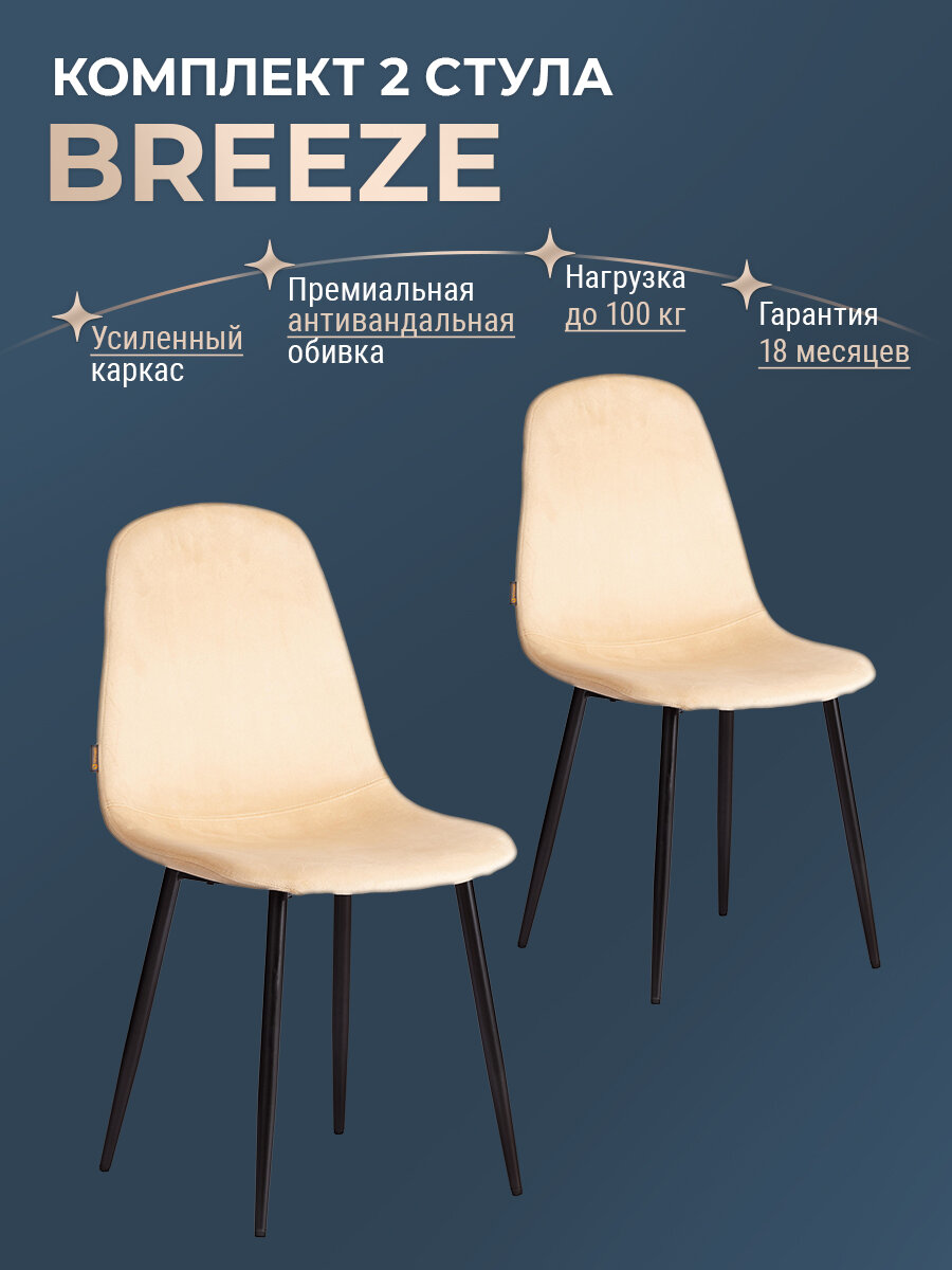Комплект стульев для кухни TetChair BREEZE (mod. JSC-58), 2 шт, велюр, песочный/черный: сравнение цен, характеристики, фото, актуальное наличие и цены.