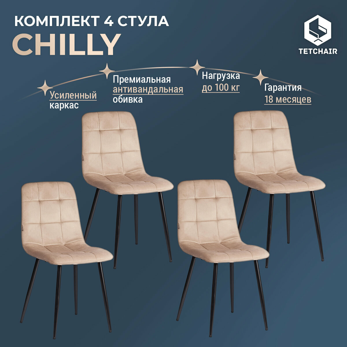 Купить Комплект стульев для кухни TetChair CHILLY (mod. JSC-220) 4 шт, велюр/металл, бежевый/черный с доставкой по всей России. Комплект стульев для кухни TetChair CHILLY (mod. JSC-220) 4 шт, велюр/металл, бежевый/черный: сравнение цен, характеристики, фото, актуальное наличие и цены.