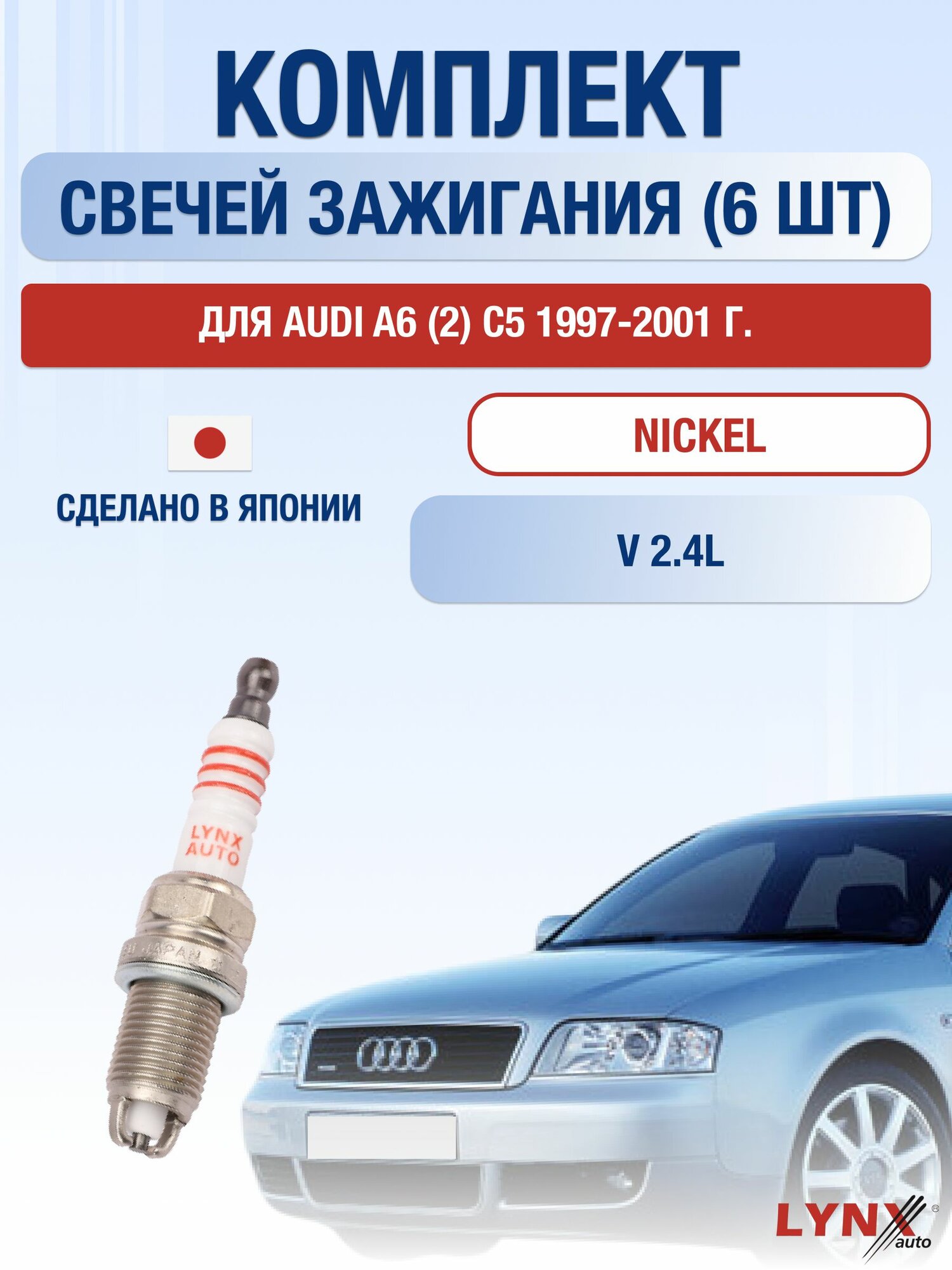 Набор свечей зажигания LYNXauto для двигателя 2.4 (AGA, ALF, AML, APS, ARJ, AJG, AMM, APZ, APC) автомобиля Audi A6 (2) C5 с электродами из никеля, комплект из 6 штук — это отличный выбор для поддержания эффективной системы запуска двигателя любой машины: от японских моделей до европейских.