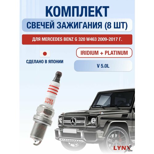 Набор свечей зажигания LYNXauto для двигателя 5.0 (463.247, 463.248, 463.249, 463.240, 463.241, .(M113.962) автомобиля Mercedes Benz G 500 W463 с электродами из иридия и платины, комплект из 8 штук — это отличный выбор для поддержания эффективной системы запуска двигателя любой машины: от японских моделей до европейских.