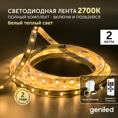Эта светодиодная лента 2м идеально подходит для создания уютного освещения в вашем доме. Гибкая и самоклеящаяся липкая основа позволяет легко установить её на любую поверхность: на потолок, стены или шкафы. Она украсит интерьер любой комнаты теплым белым свечением: кухни, спальни, рабочей зоны, детской или гардеробной. Особенно актуально использовать её в местах, где необходим контурный мягкий и равномерный свет. LED подсветка является энергосберегающей, что обеспечивает долгий срок службы и экономичность. Высокий индекс цветопередачи гарантирует качественное освещение, не искажает естественные цвета. Это делает её идеальной для декорирования различных помещений и создания утончённой эстетики. Пульт в комплекте позволяет легко менять режимы подсветки и управлять яркостью. Светодиоды обеспечивают интенсивный световой поток, способствующий яркое свечение и создание интересных световых эффектов. Лед лента 2 метра прекрасно вписывается в натяжные или подвесные потолки, подчеркивая контуры интерьера. Использование такой декоративной подсветки поможет акцентировать внимание на определённых элементах комнаты, зоны отдыха и в других сухих помещениях. Блок питания и диммер в комплекте - достаточно соединить и пользоваться. Преобразите ваш дом с помощью ярких светодиодов!