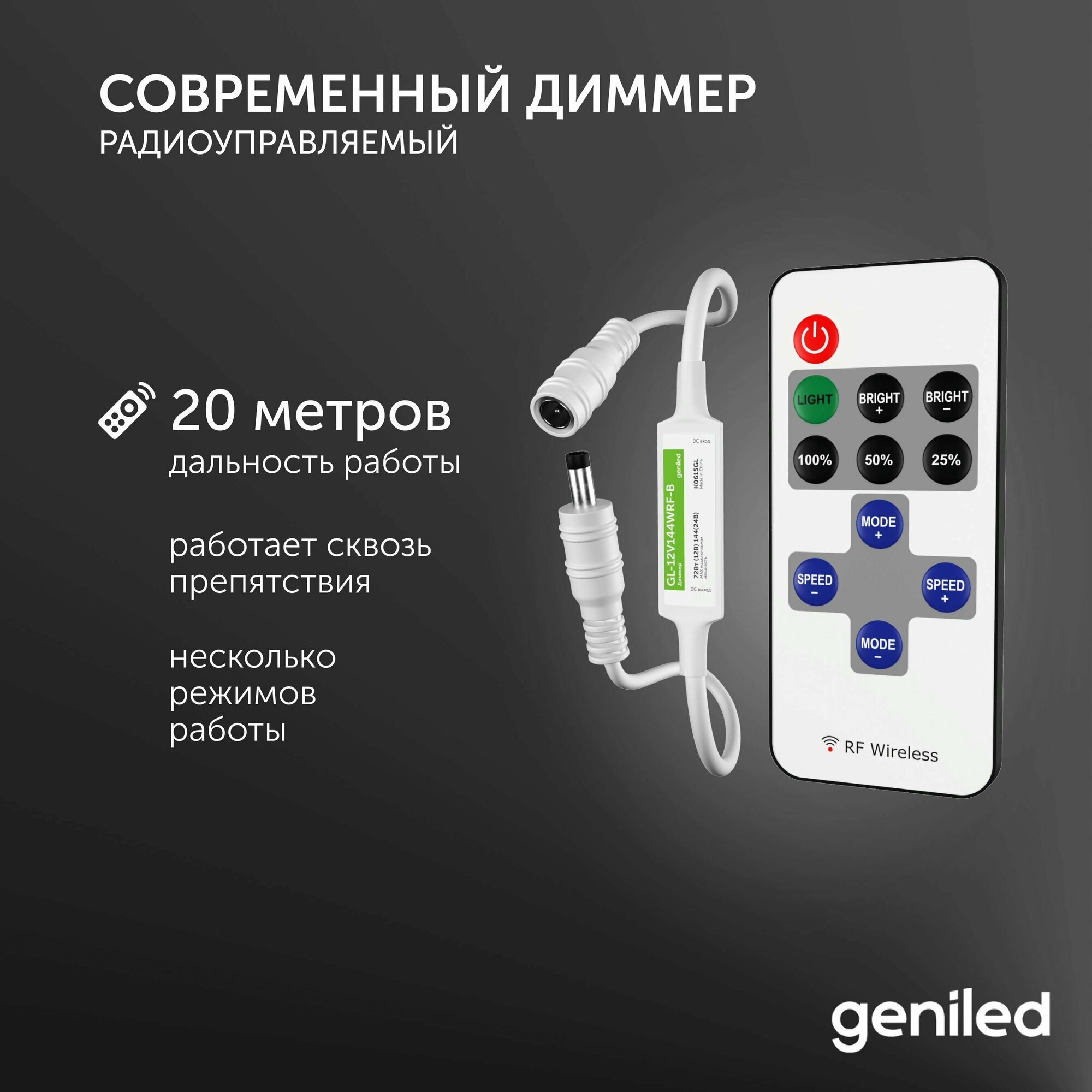 Светодиодная лента, блок питания, диммер с пультом, инструкция по эксплуатации, упаковка
