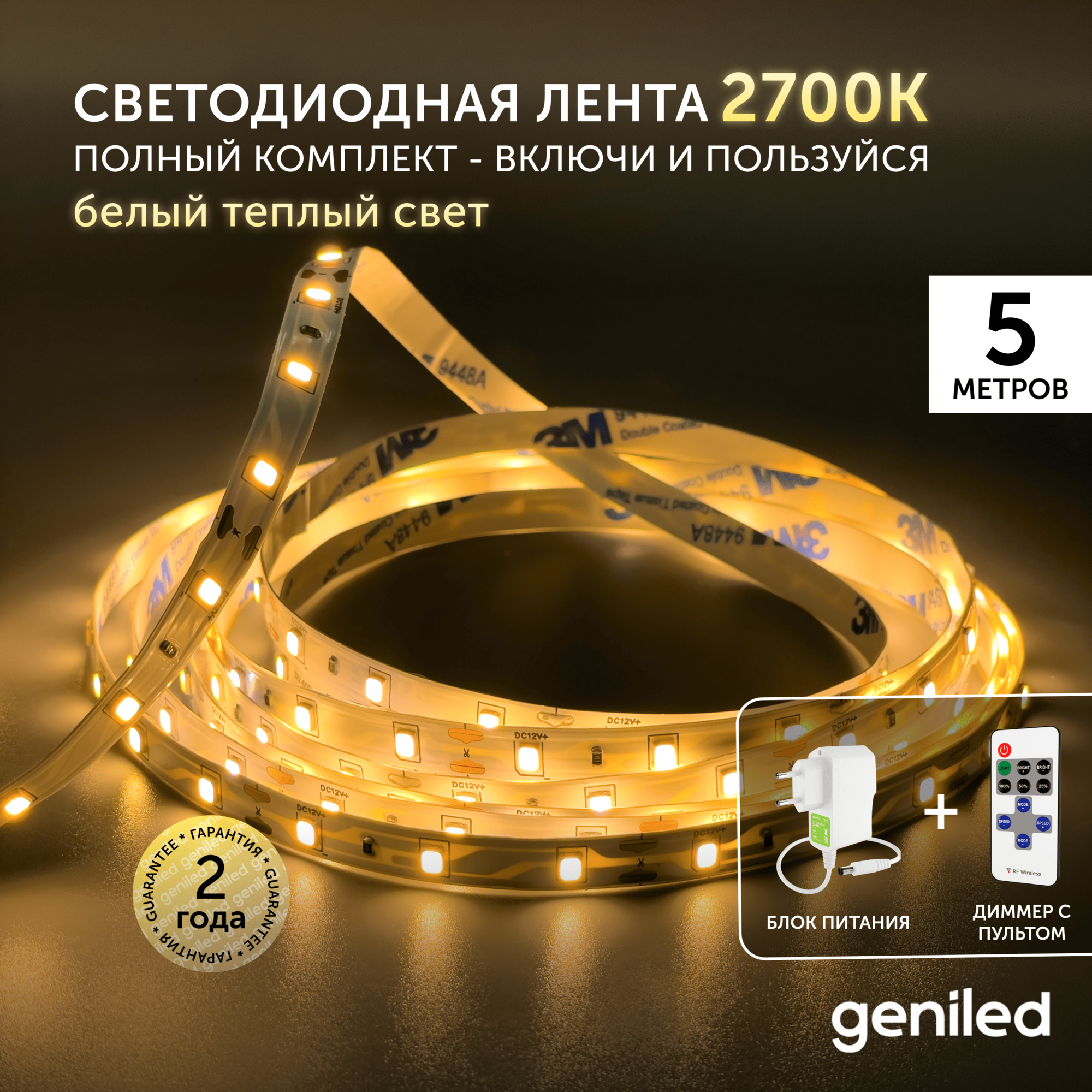 Комплект светодиодная лента белая 5 метров подсветка на кухню с пультом 5 вт/м яркая с блоком питания