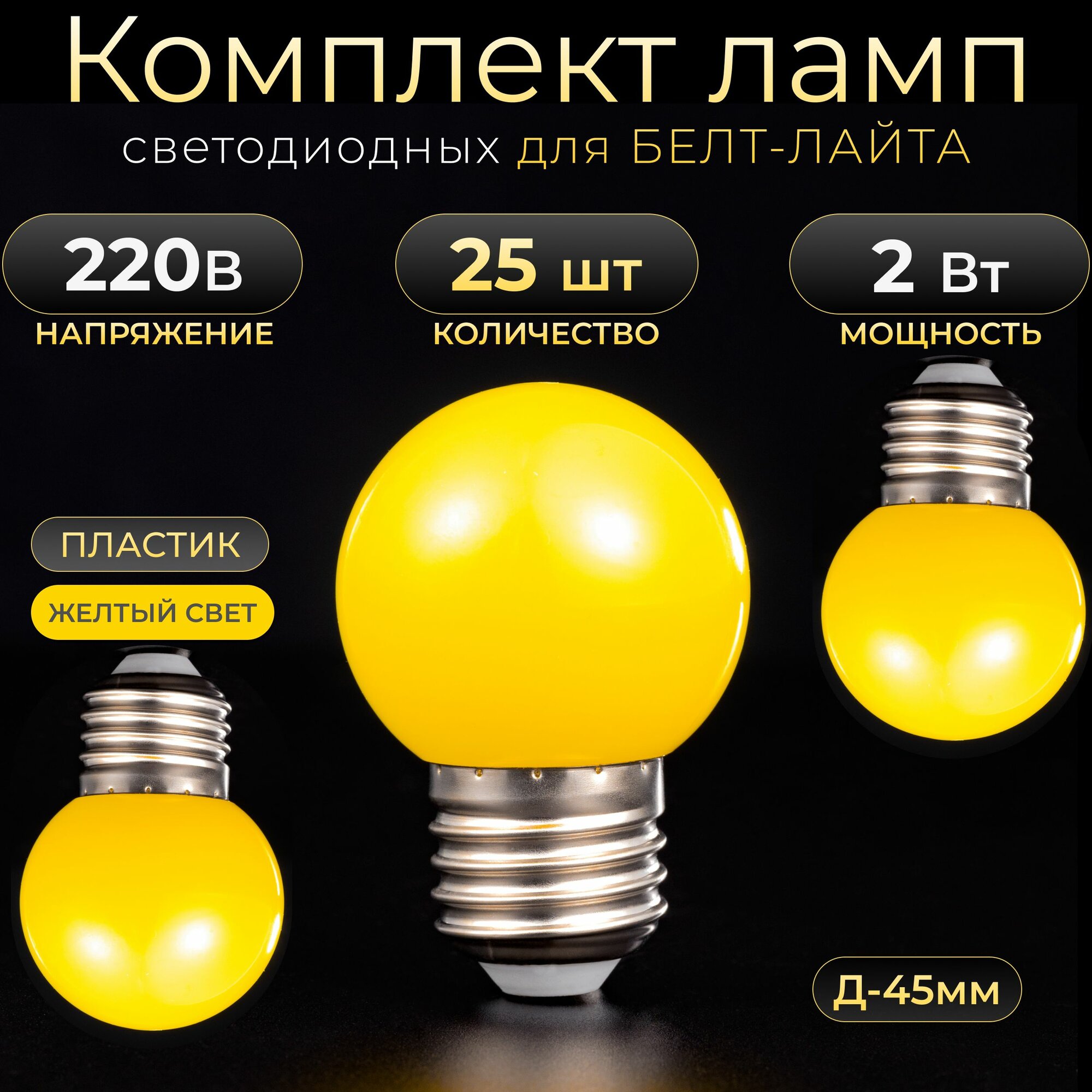 Купить Комплект Светодиодных Ламп Е27 (G45) для Белт-Лайта, 25 шт, желтый свет, 2 Вт, пластик, 220 В. Код: 029805 с доставкой по всей России.