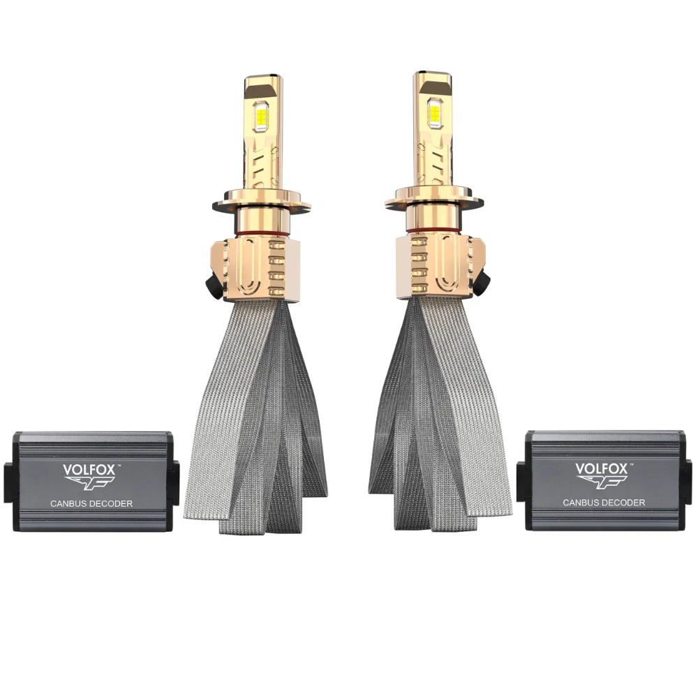 Представляем новую линейку светодиодных ламп VOLFOX серии DIAMOND PRO LED, идеально подходящую для ближнего (головного) освещения, а также в качестве дневных ходовых огней и противотуманных фар. Лампы работают при напряжении от 9 до 24 вольт, поэтому могут быть установлены как на легковые автомобили, так и на грузовые авто или мотоциклы. Особенности VOLFOX серии DIAMOND PRO LED10000 люмен (общая - две лампы), 50W, наличие обманки. Отличное освещение во время тумана и дождя. Подходит для любых транспортных средств от 9 до 24 вольт. Высокая надежность, длительный срок службы – до 30000 часов. Преимущество над галогеновыми лампами Температура свечения – 4300К (теплый белый свет, отличная видимость в плохую погоду) Важная особенность монтажа: за счет своей конструкции сжатого радиатора установка осуществляется без резки поверхности задней крышки, поэтому монтаж может быть осуществлен самостоятельно без посещения автосервиса.