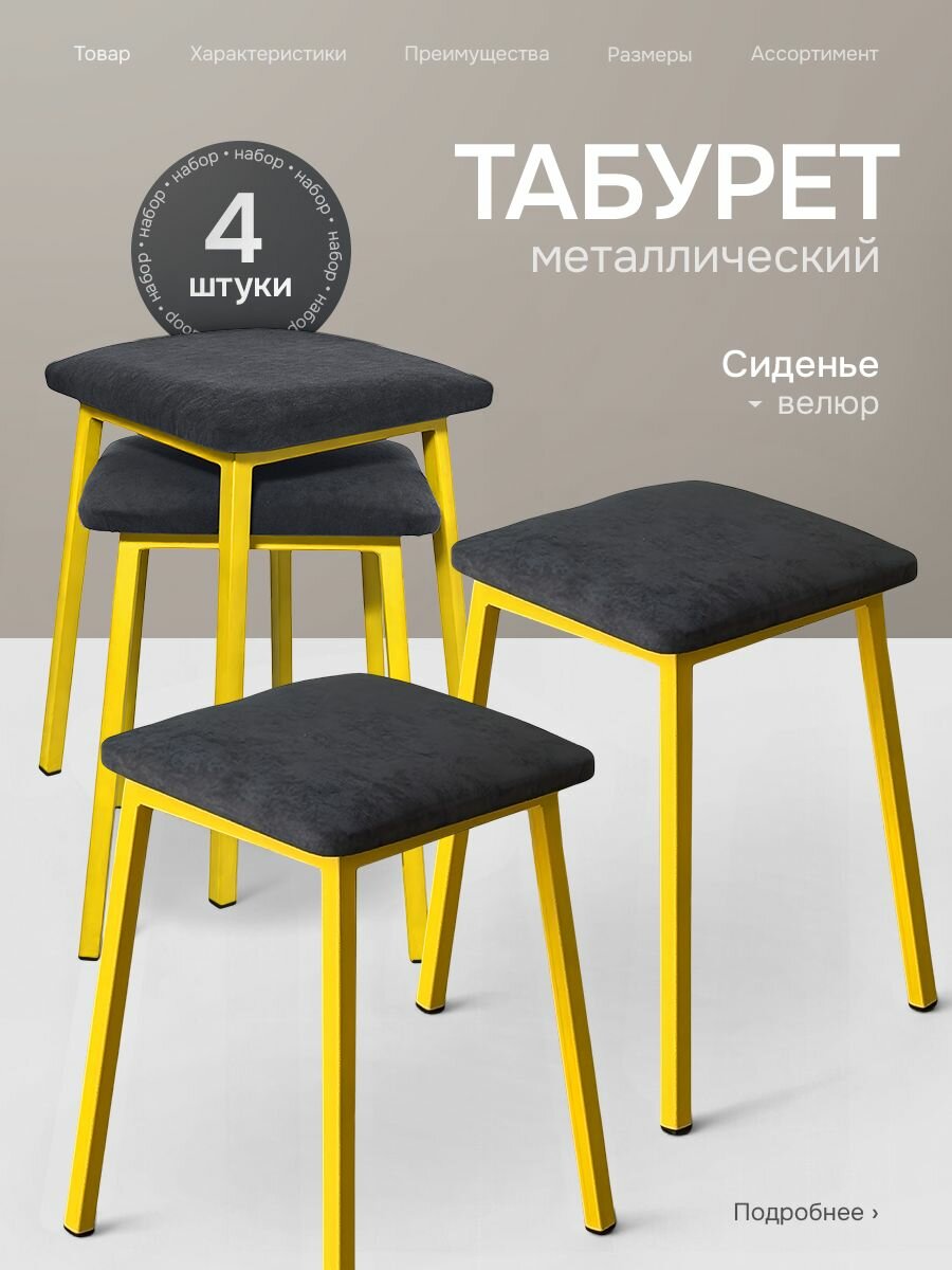 Комплект табуретов 4 шт на кухню, обивка велюр графит с желтыми ногами: сравнение цен, характеристики, фото, актуальное наличие и цены.