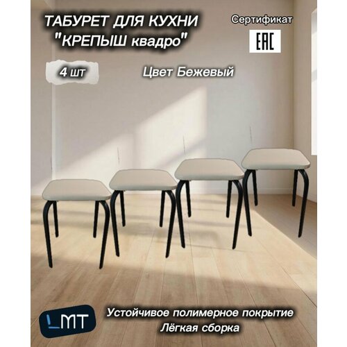Комплект табуретов для кухни "Крепыш квадро" - это стильный и функциональный выбор для вашей кухни. В комплект входят 4 табурета, выполненных в бежевом цвете, что позволяет им гармонично вписаться в любой интерьер.