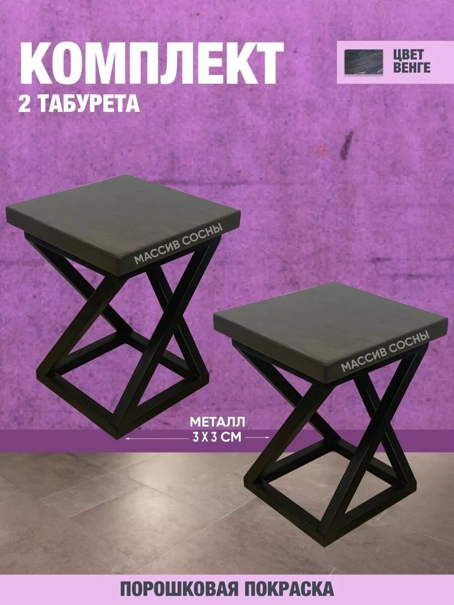 Комплект табуретов в стиле лофт усиленных Solarius Циклон, цвет венге, 2 шт. Кухонный табурет в стиле лофт – простое, но в то же время удобное решение. Устойчивый и надежный, он подчеркнет общую стилистику интерьера и прекрасно дополнит ее. Кроме того, прослужит долгие годы при активной эксплуатации. Табурет выполнен из натуральных и долговечных материалов. Они делают табуретку экологически безопасной и отвечают за прочность, а дизайнерское решение гарантирует элегантность. Габариты предмета см: 34x34x45