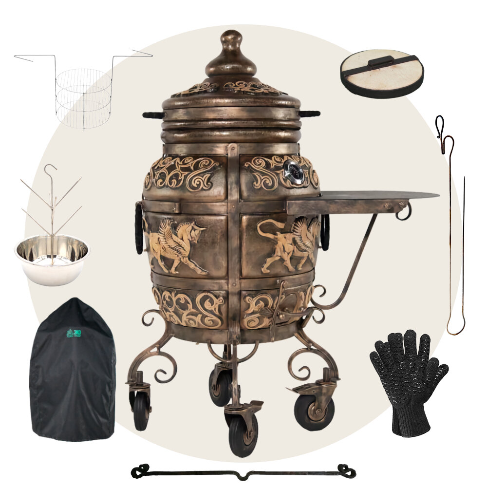 Комплект тандыр «ЭКОтандыр-Перс-Толпар» со столиком, на колёсах, чёрный с патиной: сравнение цен, характеристики, фото, актуальное наличие и цены.