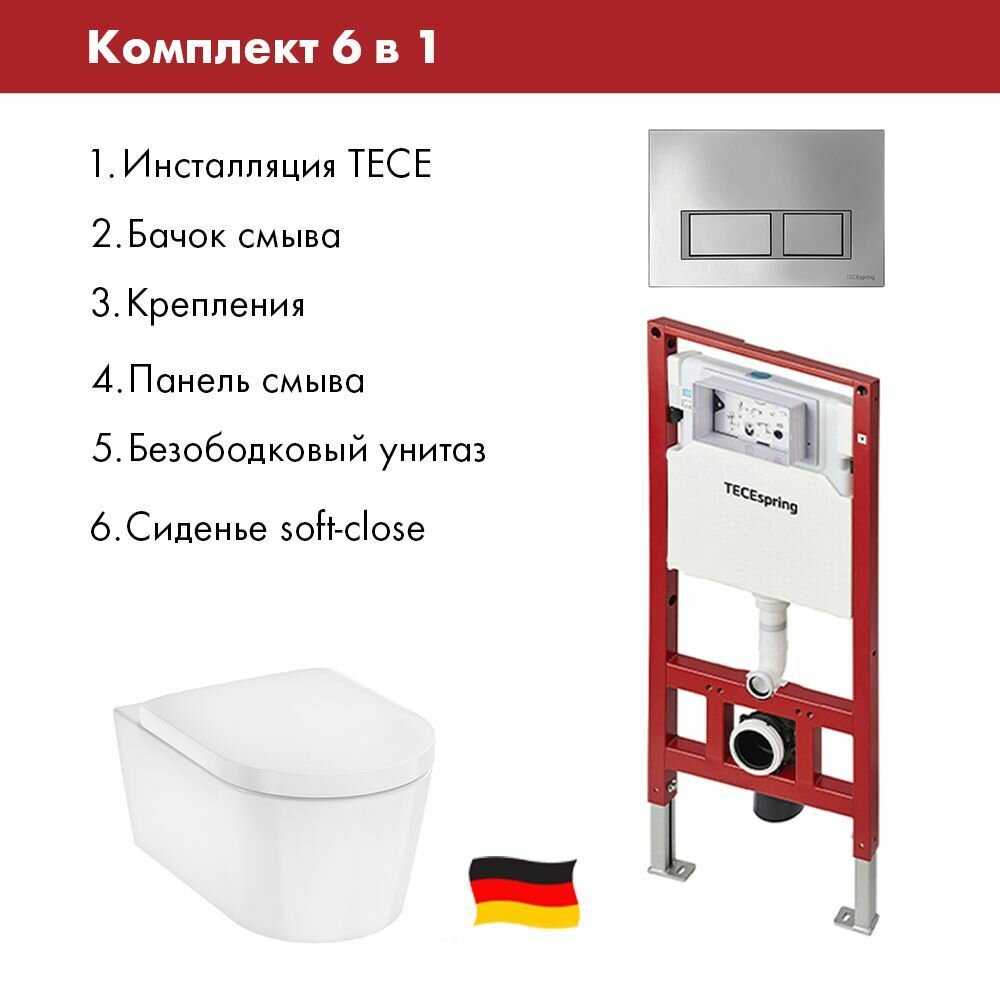 Комплект TECEspring Инсталляция, панель смыва с прямоугольными кнопками, хром глянцевый+Hansgrohe EluPura Original S Унитаз подвесной 540×360 AquaFall, сиденье с микролифтом, белый: сравнение цен, характеристики, фото, актуальное наличие и цены.