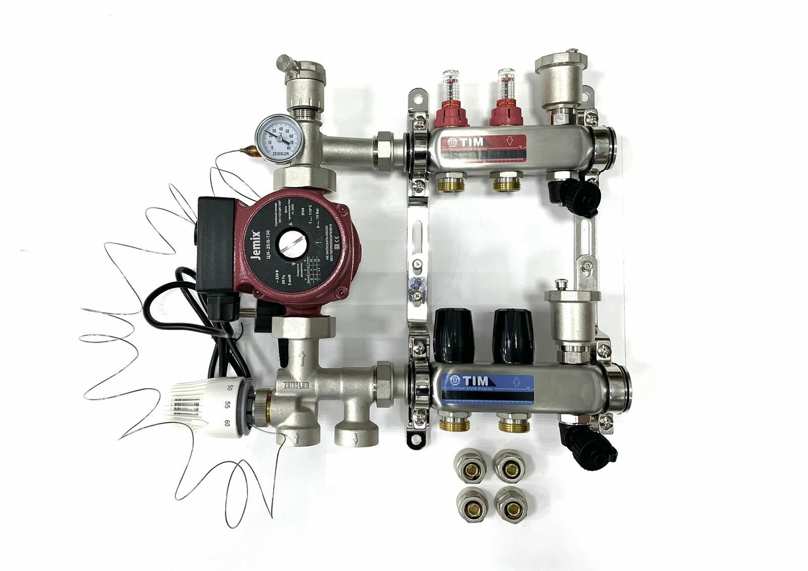 Насосно-смесительная группа MINI (20-60 градусов) ZEISSLER предназначена для создания низкотемпературных систем отопления (типа "теплый пол"). Монтируется на коллекторной группе низкотемпературного контура, подключается к высокотемпературному контуру системы отопления. Насосно-смесительный узел ZEISSLER – это превосходное сочетание качества, надежности и простоты использования. Обеспечьте себе комфорт и уют в доме с этим умным и эффективным устройством.