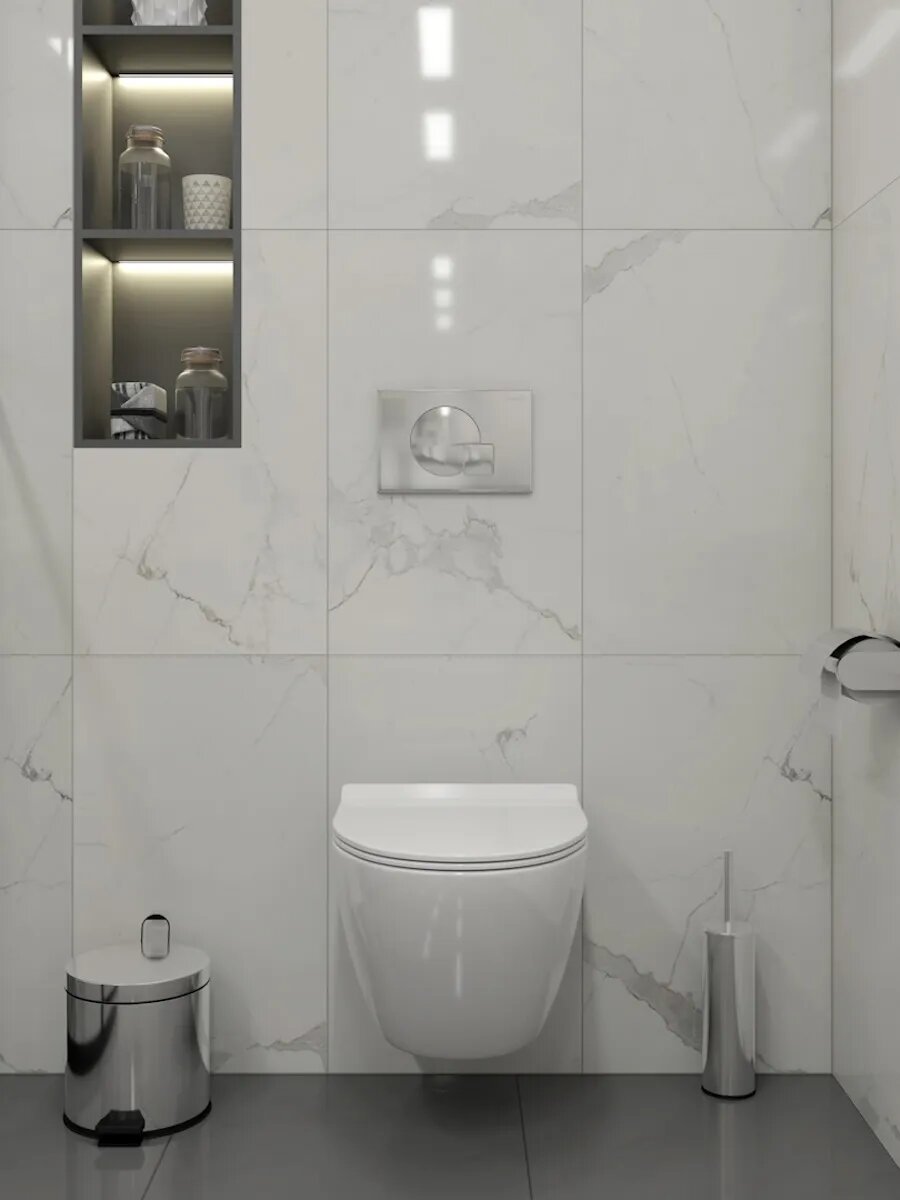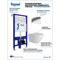 Комплект «Готовое решение» для установки инсталляции с подвесным унитазом включает: -- инсталляция TEYMI AINA 52 T70011 – монтажная рама из стального профиля толщиной 1.5 мм увеличенной ширины 52,5 см с дополнительными вертикальными усиливающими стойками, что позволяет выдерживать нагрузки до 400 кг; -- цельнолитой бачок скрытого монтажа, обшитый кожухом из пенопласта; -- клавиша смыва TEYMI ELLIE T70022CH, цвет хром; -- унитаз подвесной TEYMI LINA PRO T40106; -- быстросъёмное сиденье с микролифтом; -- полный комплект арматуры для монтажа, включающий в себя уплотнительные кольца и манжеты, трубу смыва, фановый отвод с удлинителем, защитный кожух ревизионного окна с крепежной рамкой, закрывающей панелью и крышкой; -- полный комплект крепежа для установки, а именно: крепеж к стене, шпильки для унитаза, крепежная рамка, соединительные шпильки, толкатели; -- инструкция по установке и обслуживанию. Преимущества комплекта «Готовое решение» для установки инсталляции с подвесным унитазом: -- полная (максимальная) комплектация для установки - больше ничего докупать не придётся; -- все составляющие комплекта идеально подходят друг к другу; -- взаимозаменяемость rкомплектующих; -- рама покрыта суперпрочной порошковой краской с антикоррозионными свойствами; -- высота рамы может регулироваться с ходом до 20 см с помощью ножек, изготовленных из оцинкованной стали; -- сливной бачок скрытого монтажа изготовлен из современных полимерных материалов и является цельнолитым (бесшовным), что позволяет ему работать без протечек в течение всего периода эксплуатации; -- специальный кожух из пенопласта защищает сливной бачок от возникновения конденсата и создаёт дополнительную шумоизоляцию; -- лёгкость обслуживания сливного бачка достигается благодаря удобному ревизионному окну, скрытому за клавишей смыва; -- клавиша смыва имеет две кнопки и работает в режиме эконом / полный (объёмы смыва 3 / 6 литров); -- гарантия на весь комплект составляет 10 лет, а рама прослужит все 50. Комплект «Готовое решение» для установки инсталляции TEYMI AINA 52 с подвесным унитазом TEYMI LINA PRO T40106 и клавишей TEYMI ELLIE T70022CH в цвете хром подобран специально для того, чтобы покупателям было проще сориентироваться в огромном выборе товаров для ванной комнаты. Оптимальное сочетание инсталляционной системы, клавиши смыва и подвесного унитаза позволит не задумываясь сделать правильный выбор. Инсталляция для подвесного унитаза от известного финского бренда TEYMI предназначена для оборудования санузлов и выгодно отличается своей надёжностью и простотой установки. Уважаемые покупатели, обращаем ваше внимание на то, что система инсталляции TEYMI AINA 52 может быть также укомплектована другими клавишами смыва или подвесными унитазами от бренда TEYMI (вы легко сможете найти их на этом сайте по указанным артикулам). Предлагаем вам рассмотреть варианты сочетания со следующими клавишами: : HELMI хром T70202CH : HELMI черная T70203BM : HELMI белая T70018WM : LINA хром T70102CH : LINA черная T70103BM : LINA белая T70019WM : AINA хром T70012CH : AINA черная T70013BM : AINA белая T70020WM : KATI хром T70701CH : KATI черная T70702BM : KATI белая T70021WM : ELLIE хром T70022CH : ELLIE черная T70023BM : ELLIE белая T70024WM Также просим обратить взгляд на наши лучшие безободковые подвесные унитазы: : SOLLI T40201 : LINA S T40102 : HELMI S T40302 : HELMI VORTEX T40303 : IVA T40601 : ELLIE T40802 : LINA MEDIA T40105 : LORI T40501 : KATI T40701 : HANNA PRO T40901 : HELMI S BLACK T40302MB : VITRA PRO T40806 : VITRA T40804 : DEMI T40208 : LINA VORTEX T40110 : RITTA T40809 : LINA PRO T40106