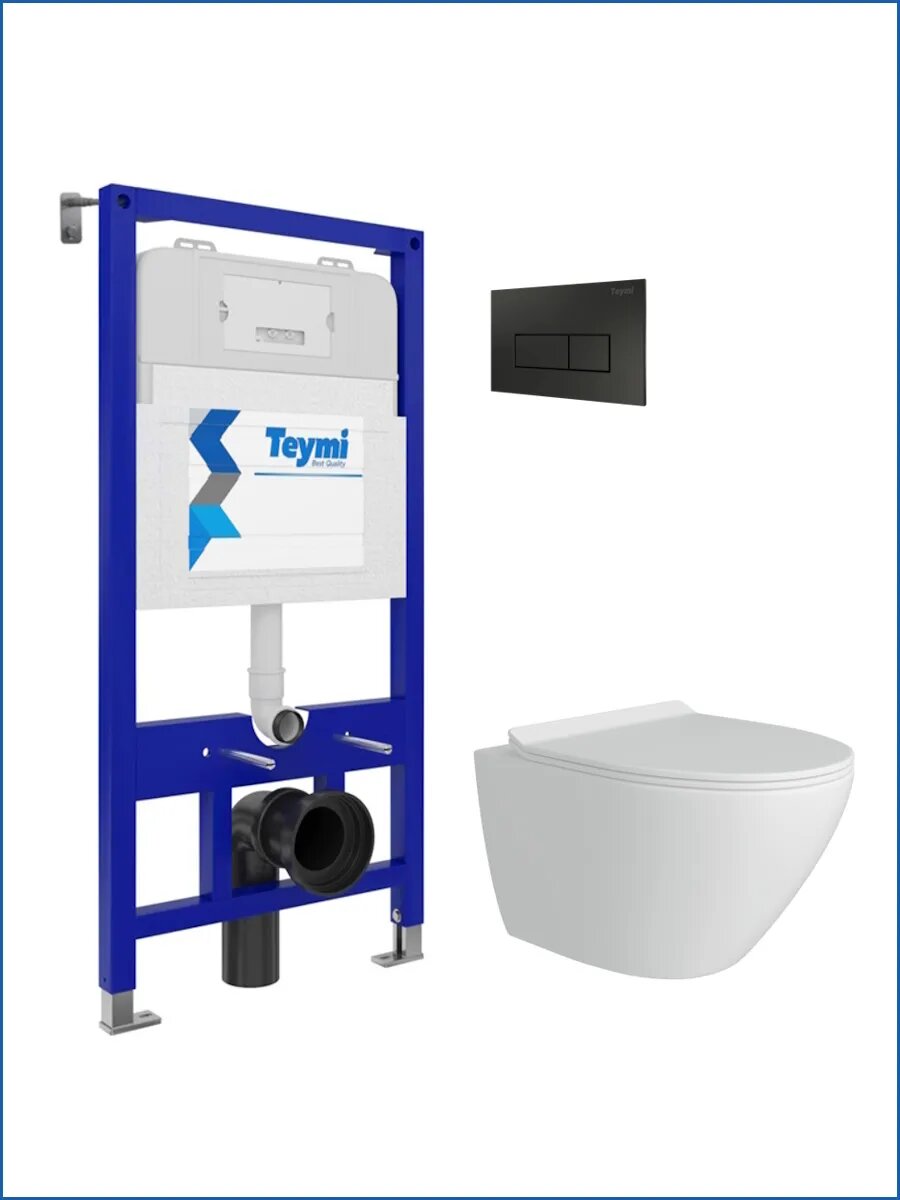 Комплект «Готовое решение» для установки инсталляции TEYMI AINA 52 с подвесным унитазом TEYMI LINA PRO T40106 и клавишей TEYMI HELMI T70203BM в цвете черный подобран специально для того, чтобы покупателям было проще сориентироваться в огромном выборе товаров для ванной комнаты. Оптимальное сочетание инсталляционной системы, клавиши смыва и подвесного унитаза позволит не задумываясь сделать правильный выбор. Инсталляция для подвесного унитаза от известного финского бренда TEYMI предназначена для оборудования санузлов и выгодно отличается своей надёжностью и простотой установки.