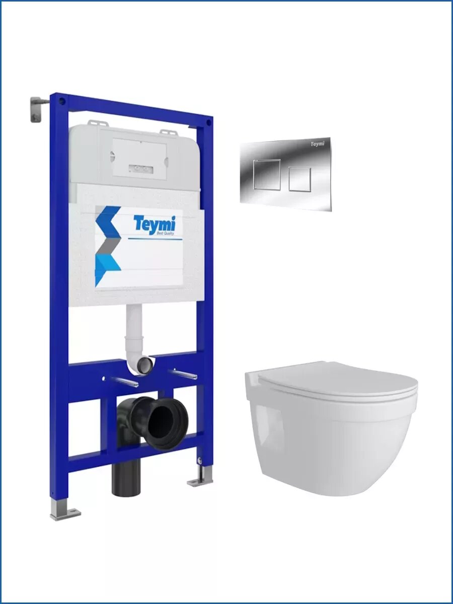 Комплект «Готовое решение» для установки инсталляции TEYMI AINA 52 с подвесным унитазом TEYMI VITRA PRO T40806 и клавишей TEYMI KATI T70701CH в цвете хром подобран специально для того, чтобы покупателям было проще сориентироваться в огромном выборе товаров для ванной комнаты. Оптимальное сочетание инсталляционной системы, клавиши смыва и подвесного унитаза позволит не задумываясь сделать правильный выбор. Инсталляция для подвесного унитаза от известного финского бренда TEYMI предназначена для оборудования санузлов и выгодно отличается своей надёжностью и простотой установки.