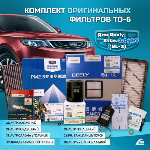Комплект ТО-6 с оригинальными фильтрами для Geely Atlas 2.0, 2.4 (NL-3): сравнение цен, характеристики, фото, актуальное наличие и цены.