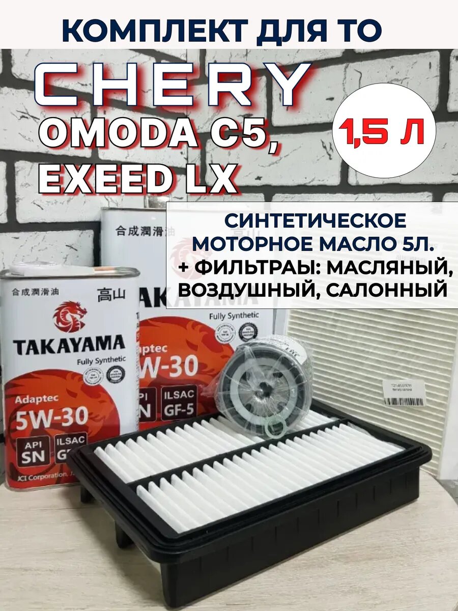 Комплект ТО для Chery TIGGO 4,5,7,8 (4,7,8 pro) EXEED LX , OMODA C5 фильтр салонный/воздушный/масляный: сравнение цен, характеристики, фото, актуальное наличие и цены.