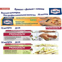 Купить Комплект: TOPPITS Бумага д/профессиональной выпечки, 20шт. PRIMAPACK Пищевая пленка, 30м х 29 см, PRIMAPACK Алюминиевая фольга 10м х 29 см. с доставкой по всей России.
