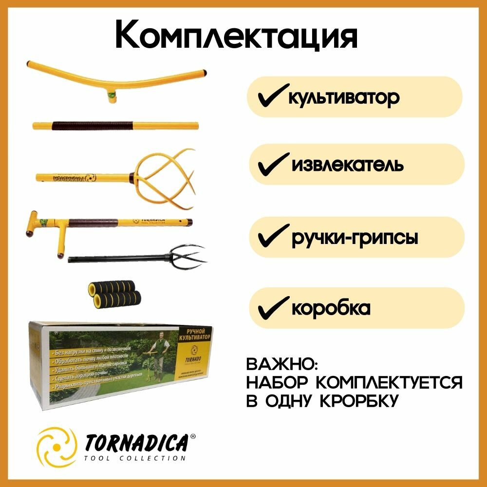 Комплект Торнадика (Tornadica) культиватор с грипсами + извлекатель сорняков. Комплект предназначен для быстрого рыхления почвы любой плотности, извлечение больших и малых сорняков, быстрой прополки, рыхления междурядий и т. д, а ручки-грипсы надежно защитят Ваши руки. Приобретая садовые инструменты Торнадика в комплекте, вы экономите своё время и получаете выгодную цену.