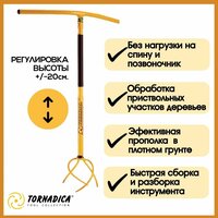 Извлекатель сорняков Tornadica поможет Вам обработать, прорыхлить небольшой участок перед посадкой или в междурядьях, между цветами, густо посаженной рассадой, молодым растениями, в местах, где сложно или нежелательно работать тяпкой или, тем более, лопатой
