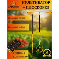 Комплект Торнадика (Tornadica) культиватор с грипсами и плоскорез. Комплект предназначен для быстрого рыхления почвы любой плотности, извлечение больших и малых сорняков, быстрой прополки, рыхления междурядий и т. д, а ручки-грипсы надежно защитят Ваши руки. Приобретая садовые инструменты Торнадика в комплекте, вы экономите своё время и получаете выгодную цену.