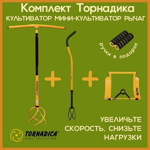 Комплект Торнадика (Tornadica) культиватор с грипсами, рычаг-педаль, культиватор мини. Комплект предназначен для быстрого рыхления почвы любой плотности, извлечение больших и малых сорняков, быстрой прополки, рыхления междурядий и т. д, а ручки-грипсы надежно защитят Ваши руки. Приобретая садовые инструменты Торнадика в комплекте, вы экономите своё время и получаете выгодную цену.