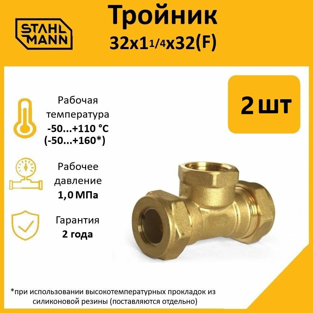Купить Комплект тройников для водопроводных труб Stahlmann F 32х1 1/4х32 EF, цвет желтый, 2 шт. с доставкой по всей России. Комплект тройников для водопроводных труб Stahlmann F 32х1 1/4х32 EF, цвет желтый, 2 шт.: сравнение цен, характеристики, фото, актуальное наличие и цены.