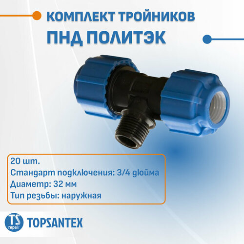 Комплект тройников переходных ПНД 32х3/4"х32 НР представляет собой надежное и качественное решение для подключения трубопроводов в системах водоснабжения. Изготовленный из полиэтилена низкого давления (ПНД), этот аксессуар обеспечивает долговечность и высокую устойчивость к воздействию внешних факторов.