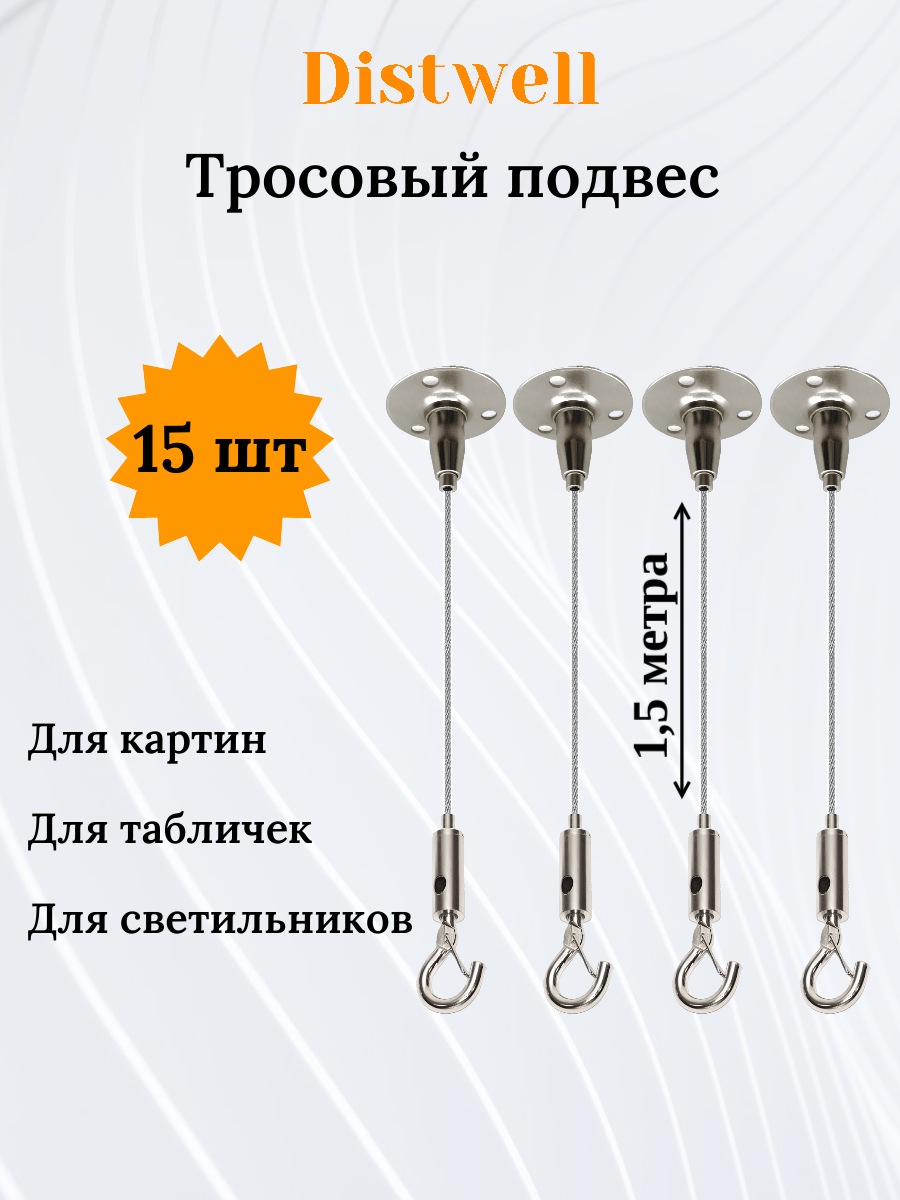 В целом, комплект тросовых подвесов регулируемый, 1,5 метра - 15 шт. (комплект №1) от Distwell является отличным выбором для тех, кто ищет надежный и функциональный комплект подвесов для различных видов оборудования.