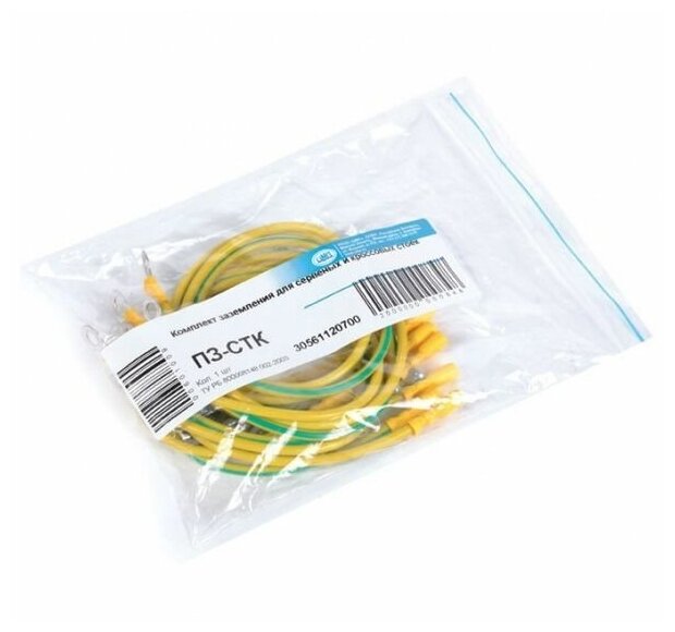 Используются для заземления установленного оборудования к корпусу шкафа/стойки, а также для организации общего контура заземления. Включает набор проводов и фиксирующих гаек: 1. Провод заземления L=400мм. сечение 4мм.кв. (кольцевой наконечник-розетка) – 8шт.; 2. Клемма ножевая B6.3-0.8 DIN46342 – 8шт.; 3. Саморез 4.2х9.5 -8шт.