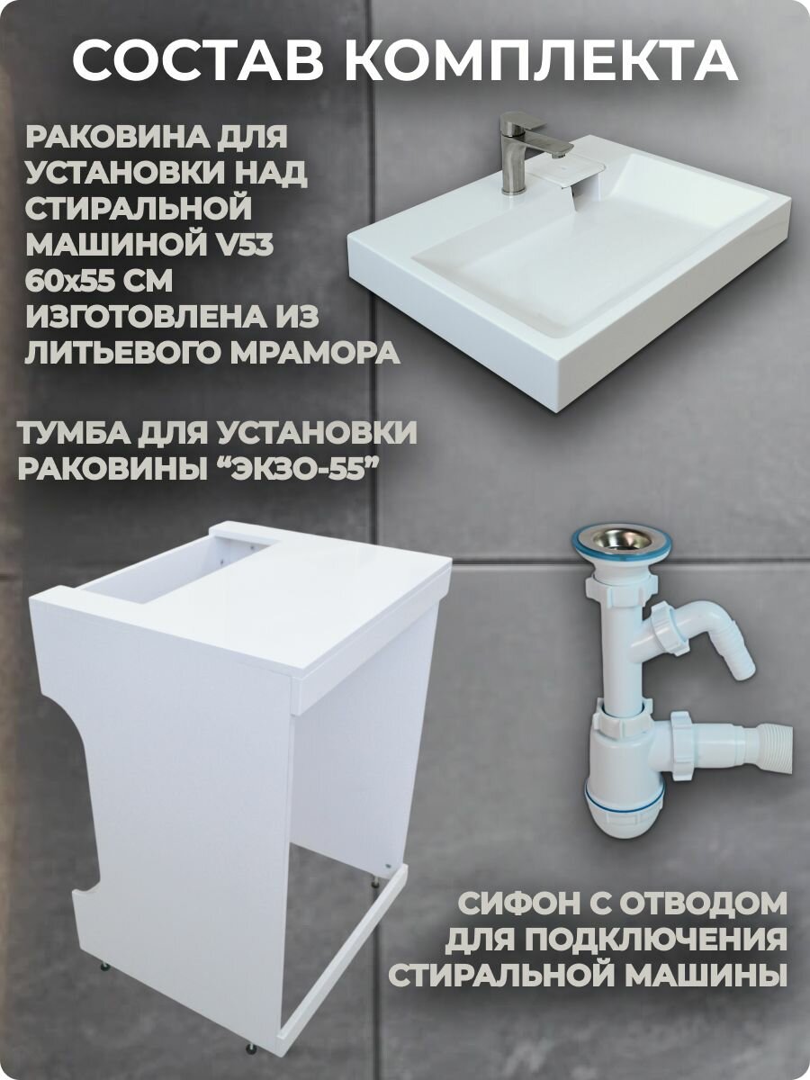 Купить Комплект: тумба с раковиной «Экзо-55» для установки над стиральной машиной с доставкой по всей России.