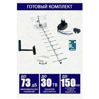 - расчетное расстояние приема сигнала до 120-150км при прямой видимости на вышку и качественном монтаже. Если вы установили антенну как положено, направили в сторону телецентра,сигнала нет! Попробуйте поставить антенну Без усилителя,используя плату которая стояла в антенне, без блока питания!Возможно у вас переусиления сигнала,по этому антенна не работает! Очень важен грамотный монтаж антенны и выбор место установки! В интернет есть видео инструкции по монтажу! Лучше всего воспользоваться услугами профессионального монтажника! В этом случае Антенна будет работать на 99%!!!