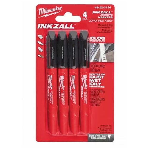 Тонкий маркер для стройплощадки, 4шт. Milwaukee INKZALL 48223154 используется для нанесения отметок на этикетках электрических проводов или строительных проектах. На колпачке имеется клипса для крепления маркера к одежде.