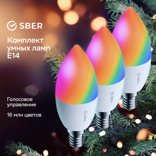 Комплект умных ламп Sber С37 (цоколь Е14), 3 шт.: сравнение цен, характеристики, фото, актуальное наличие и цены.