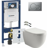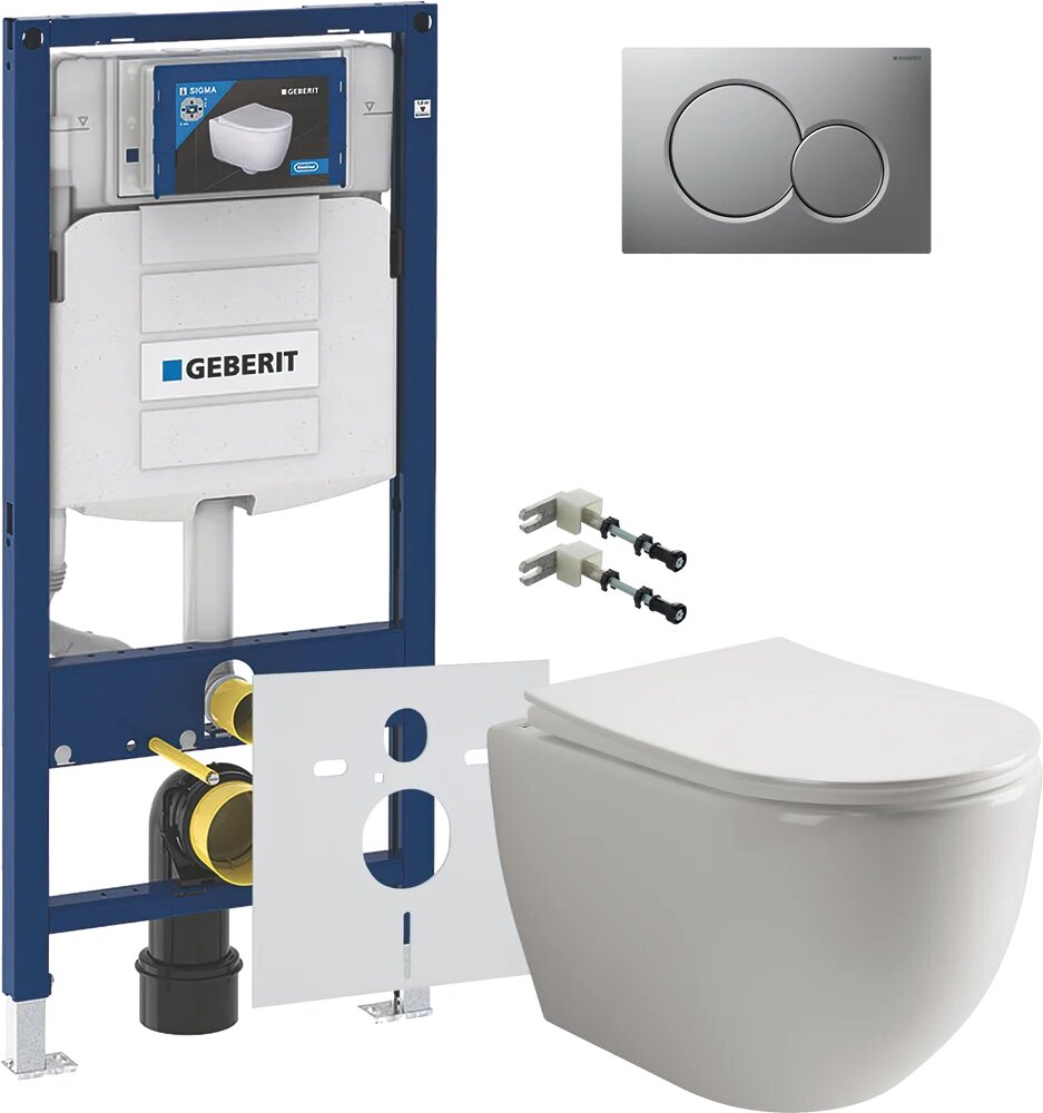 Комплект Унитаз подвесной Ceramicanova Mia Rimless CN1805 / Шумоизоляция Geberit / Кнопка Sigma лакированная, матовый хром, Инсталляция Duofix UP 320 111.300.00.5, Крепления к стене