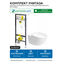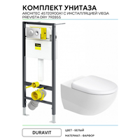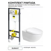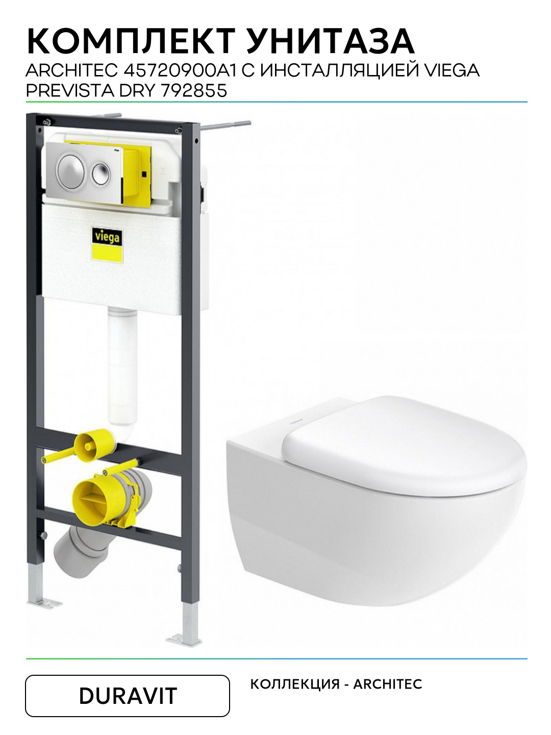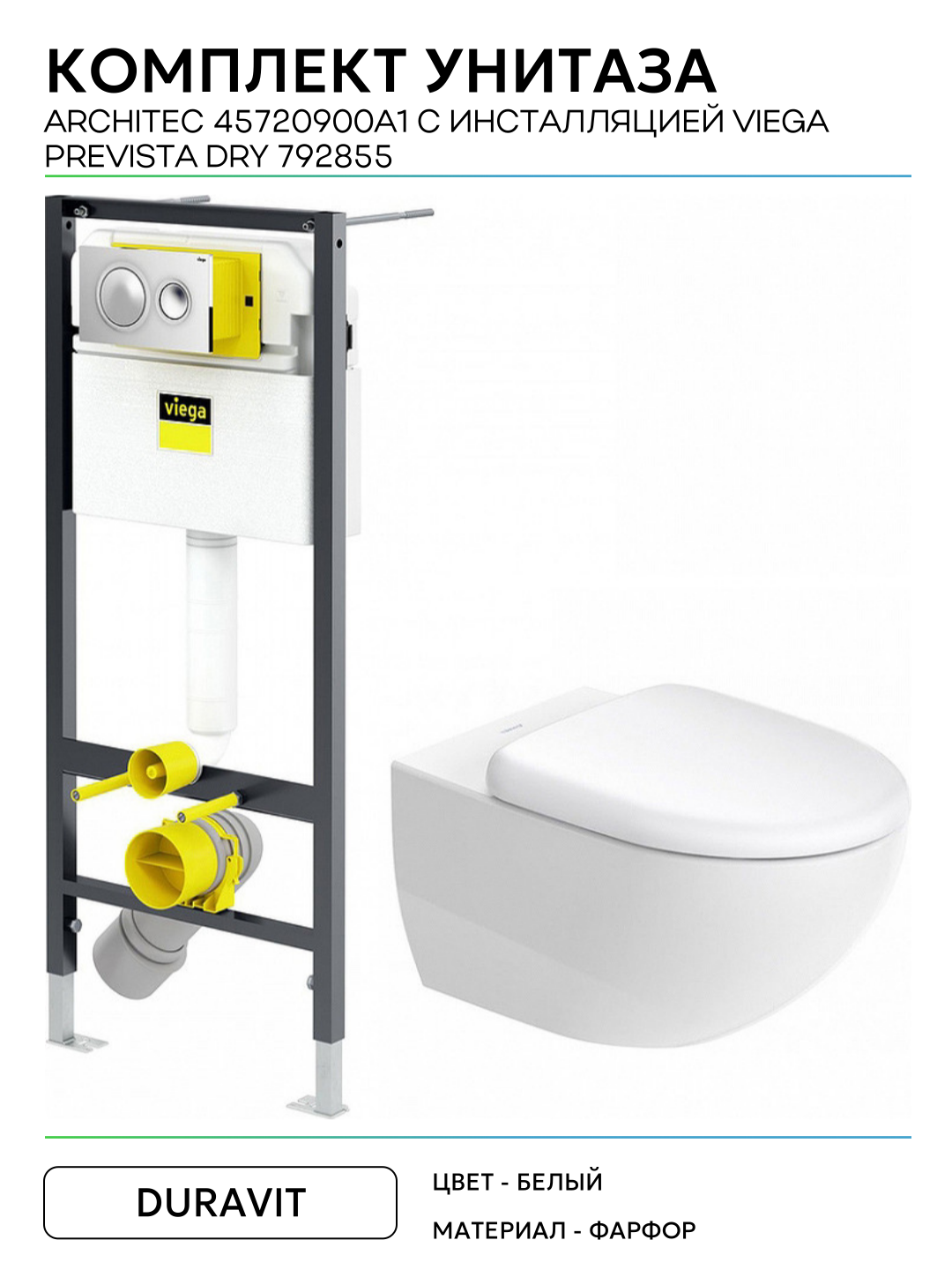 Комплект унитаза Duravit Architec 45720900A1 с инсталляцией Viega Prevista Dry 792855 с сиденьем Микролифт и клавишей смыва Хром белый фарфор подвесной: сравнение цен, характеристики, фото, актуальное наличие и цены.
