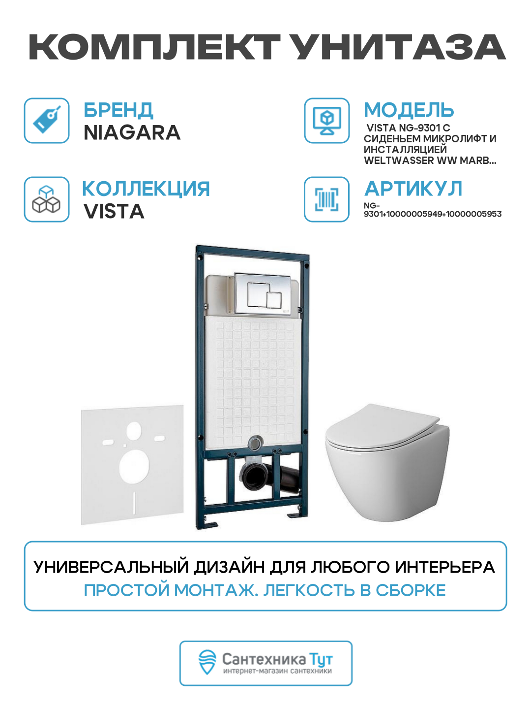 Купить Комплект унитаза Niagara Vista NG-9301 с сиденьем Микролифт, современный стиль с доставкой по всей России. Комплект унитаза Niagara Vista NG-9301 с сиденьем Микролифт, современный стиль: сравнение цен, характеристики, фото, актуальное наличие и цены.