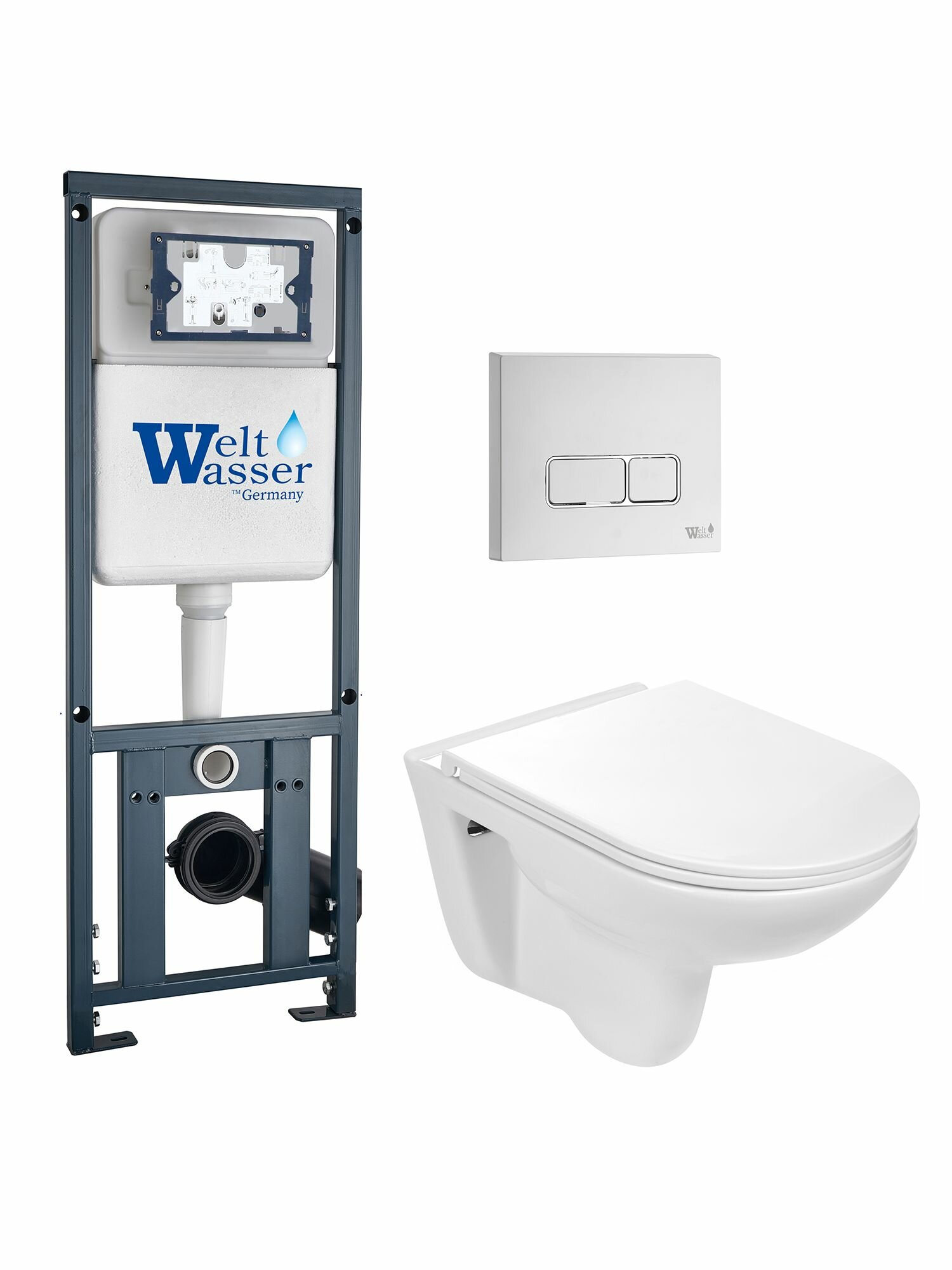 Купить Комплект унитаза с инсталляцией WeltWasser MARBERG 410 + BAARBACH 004 GL-WT + MAR 410 SE GL-WT, кнопка белая с доставкой по всей России.