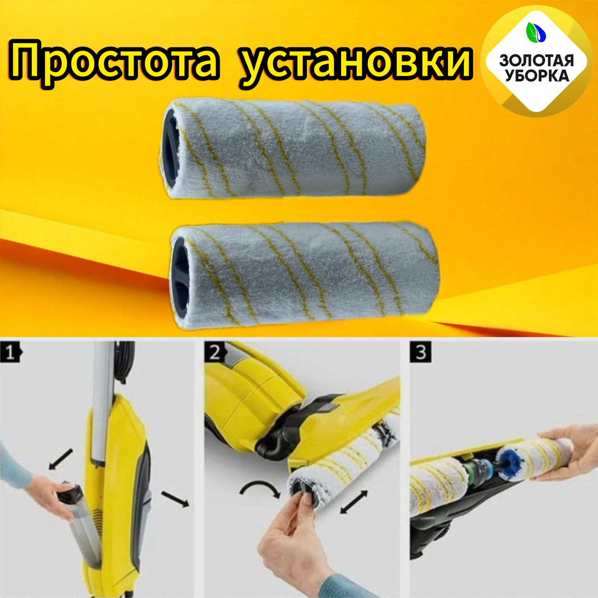 Комплект универсальных роликовых щеток золотая уборка для Karcher 2.055-006.0. GL электрошвабр серий EWM 2, FC 3 — FC 5 и FC 7, 2 штуки, желтые: сравнение цен, характеристики, фото, актуальное наличие и цены.