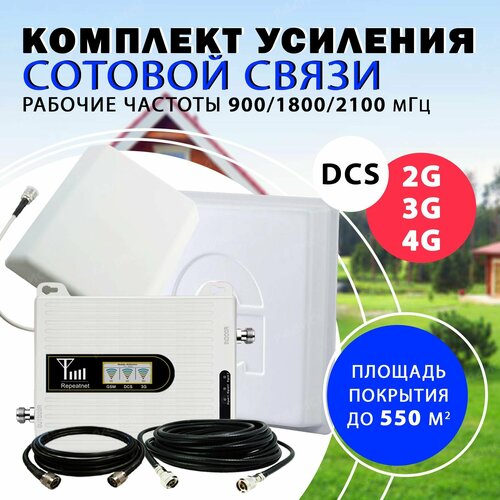 Комплект усилитель сигнала сотовой связи 2G/3G/4G (LTE) на частотах 900/1800/2100 МГц усиленный, с площадью покрытия до 550 кв. м.: сравнение цен, характеристики, фото, актуальное наличие и цены.