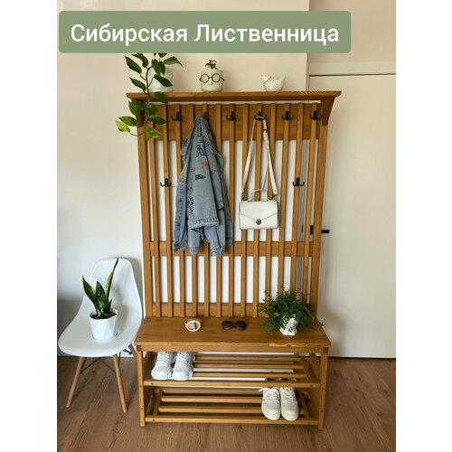 Комплект в прихожую, деревянная вешалка с обувницей, из массива Сибирской Лиственницы 185х105х32, цвет можжевельник: сравнение цен, характеристики, фото, актуальное наличие и цены.