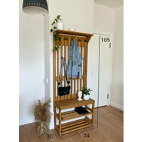 Комплект в прихожую, деревянная вешалка с обувницей, из массива Сибирской Лиственницы 185х76х32, цвет можжевельник, минимализм: сравнение цен, характеристики, фото, актуальное наличие и цены.