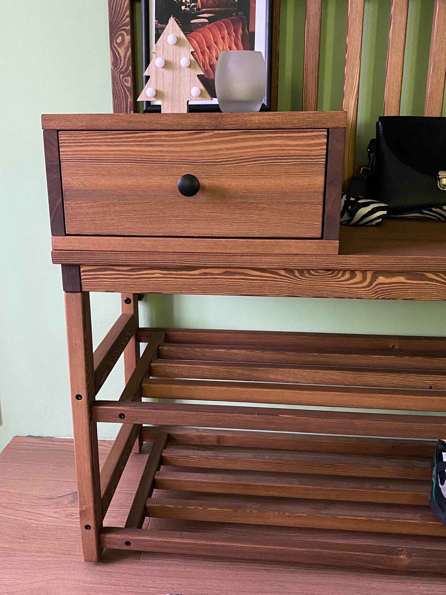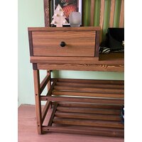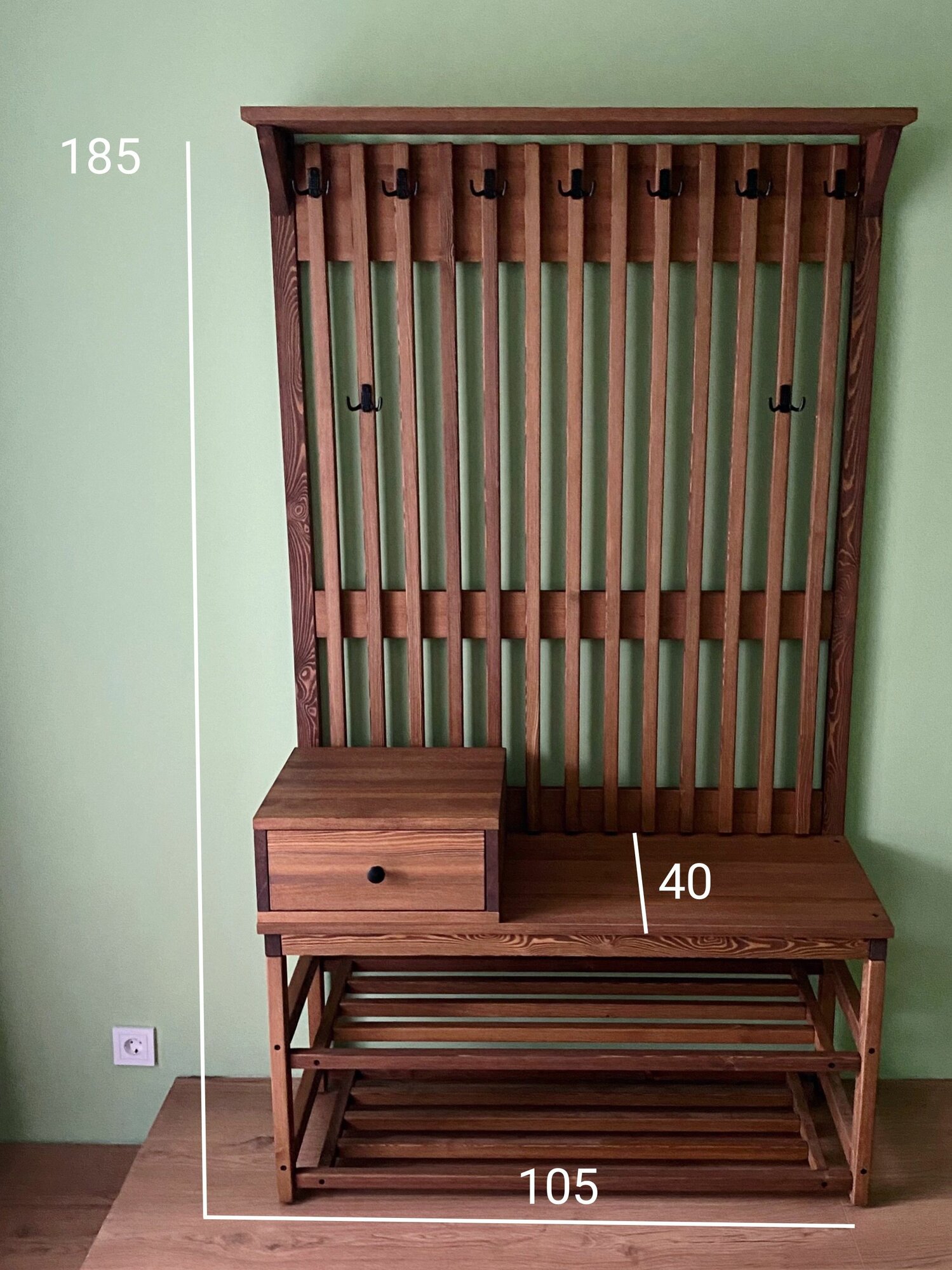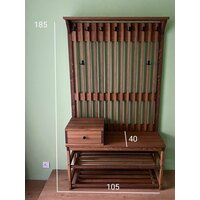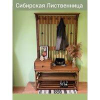 Комплект в прихожую, деревянная вешалка с обувницей, прихожая из массива Лиственницы 185х105х42, цвет Орех, в стиле лофт, минимализм: сравнение цен, характеристики, фото, актуальное наличие и цены.