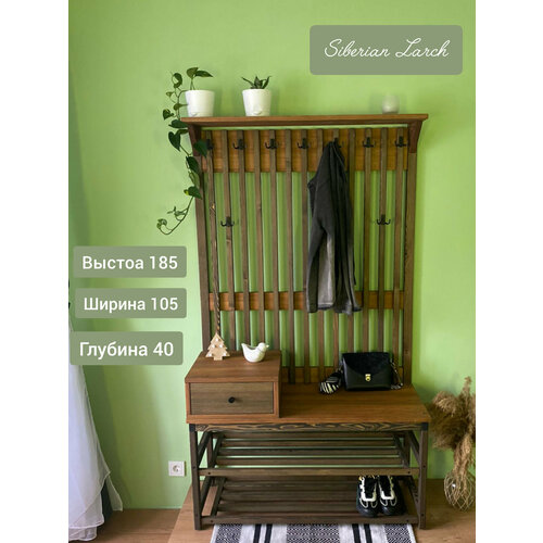 Комплект в прихожую, вешалка с обувницей, деревянная мебель из лиственницы 185х105х40: сравнение цен, характеристики, фото, актуальное наличие и цены.