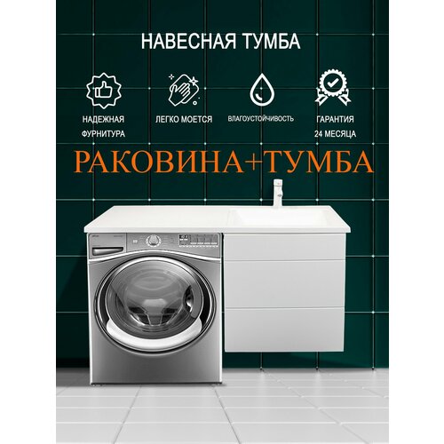 Купить Комплект в ванную комнату, Тумба навесная+Раковина марсал 110 правая с доставкой по всей России.