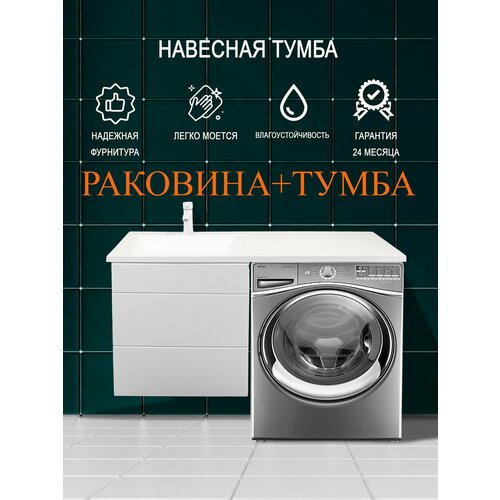 Купить Комплект в ванную комнату, Тумба навесная+Раковина марсал 120 левая с доставкой по всей России.